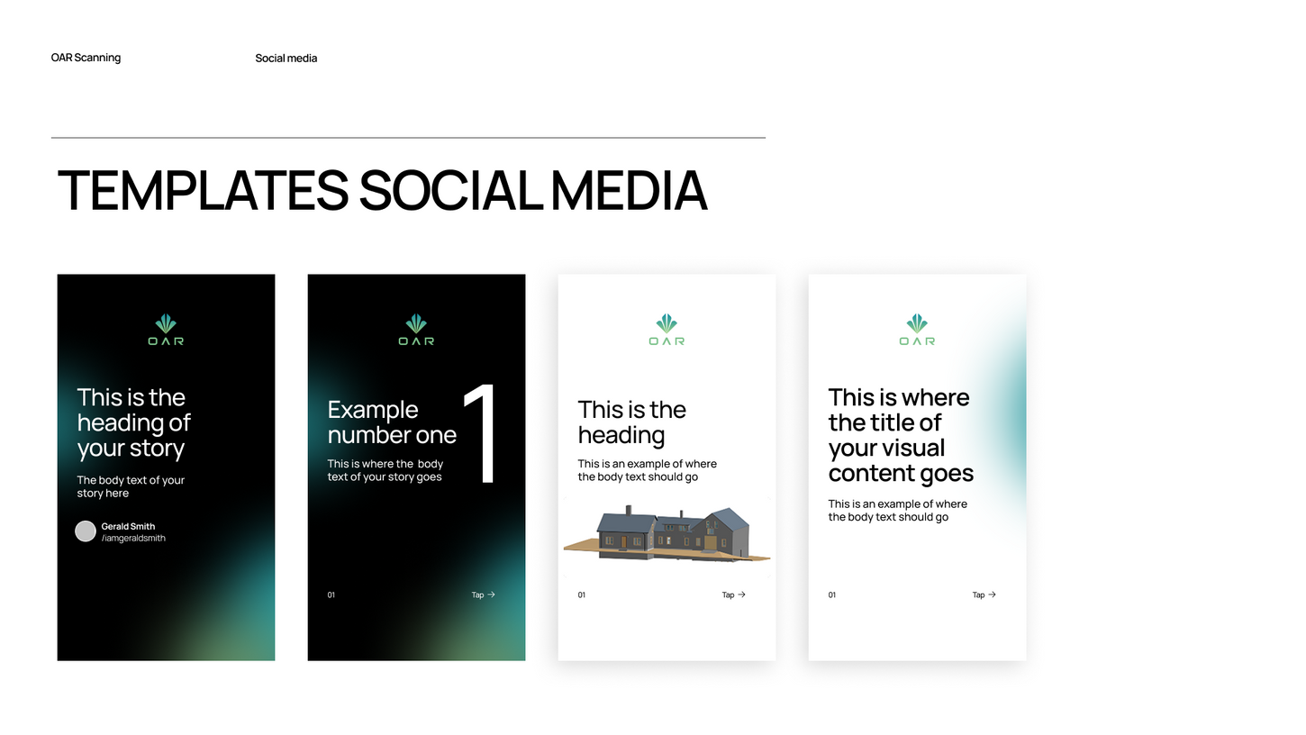 OAR Scanning is a US-based company specializing in 3D scanning for construction, BIM implementation, and VDC solutions. I created a comprehensive brand guidelines document, defining their visual identity, typography, color palette, and usage rules to ensure consistency across all platforms and communications.